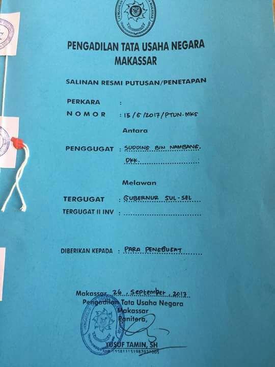 Dan setelah beberapa saat bergulir di pengadilan, akhirnya pihak PTUN mengabulkan gugatan masyarakat Desa Laikang dan Punaga Kecamatan Mangarabombang, Kabupaten Takalar, tersebut..