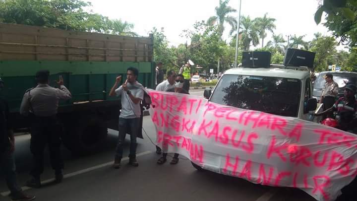 Aksi demo mereka gelar menuntut Bupati dan Baperjakat menonjobkan Kepala Dinas Pertanian, HM Najib Kasim dari jabatannya lantaran terindikasi korupsi dan menjadi sumber masalah  di dinas yang di pimpinnya tersebut.