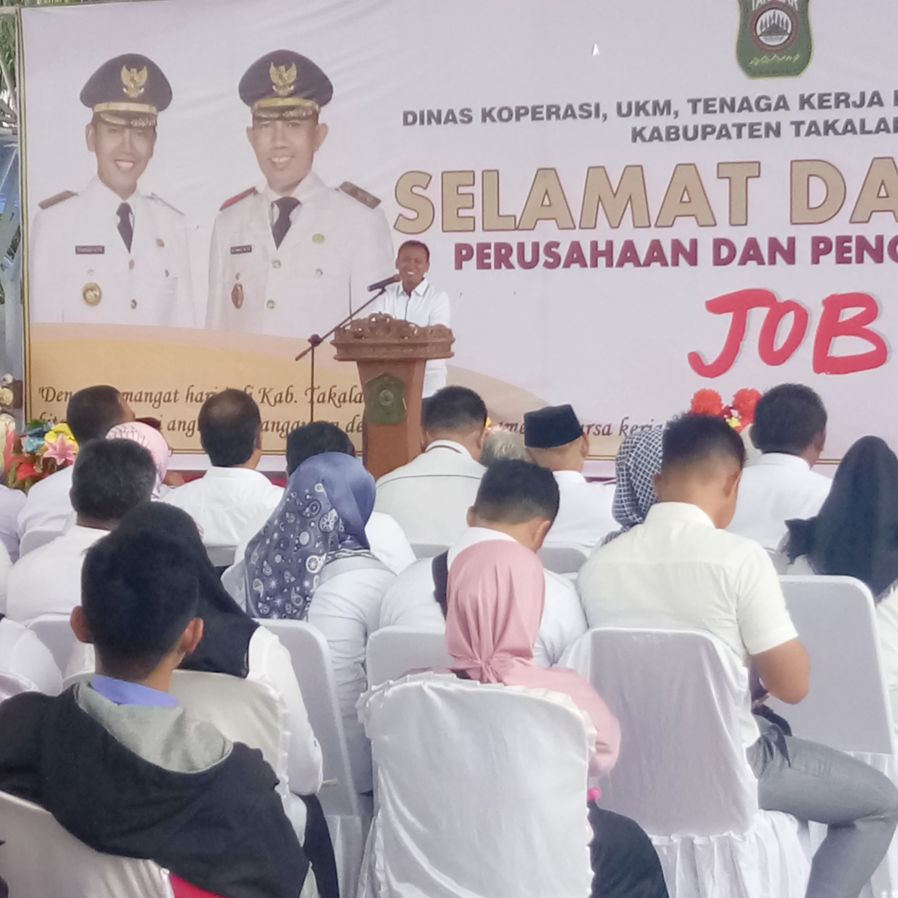 Sementara itu, Bupati Takalar Syamsari Kitta dalam sambutannya mengucapkan syukur atas terlaksanananya kegiatan Job Fair tersebut ” kita bersyukur bahwa  hajatan kita untuk melaksanakan kegiatan Job Fair, bisa terlaksana hari ini, saya berpesan agar menjadi pegawai, jangan jadikan sebagai perjalanan hidup abadi, menjadi tenaga kerja profesional hanya target antara saja, nanti kadis koperasi membuat wira usaha yang baru, tahapan selanjutnya, perusda akan jadi bapak angkat yang mau berwirausaha, perusda harus menjadi bapak angkat bagi mereka yang berjiwa interpreniur, dan Insyaallah akan ada1.000 CV gratis dan Segala isin usahanya akan kita terbitkan”. Ujar Bupati Takalar tersebut, yang disambut tepuk tangan dari para peserta yang hadir.
