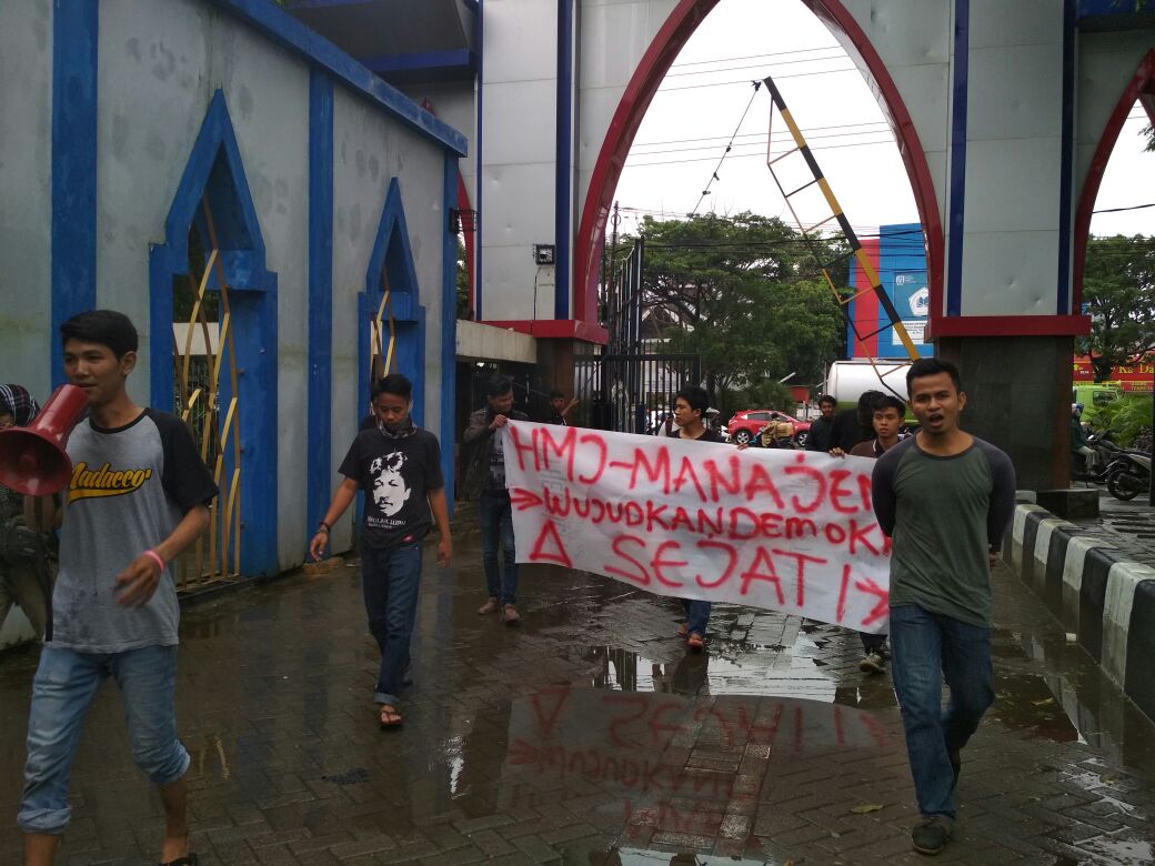 SULSELBERITA.COM.Makassar – Puluhan mahasiswa yang terhimpun dalam Himpunan Mahasiswa Jurusan Manajemen (HMJ-M) Unismuh Makassar, melakukan unjuk rasa di depan kampus Unismuh Jl. Alauddin dengan tuntutan cabut UU MD3 Nomor 17 Tahun 2004 Pasal 122 (k) dan menolak kunjungan Jokowi ke kampus UNISMUH Makassar (14 Februari 2018) sore tadi.