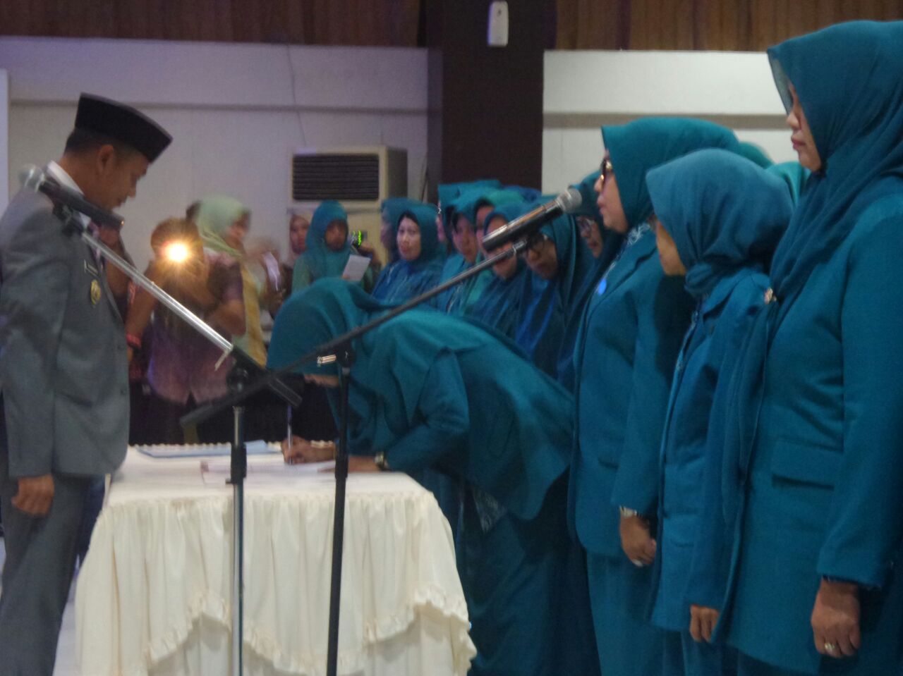 Pelantikan ditandai dengan pembacaan SK Bupati Takalar, pengambilan sumpah dan penandatanganan dan penyerahan SK bupati Takalar oleh Bupati Takalar kepada Ketua Tim Penggerak PKK Kab. Takalar.