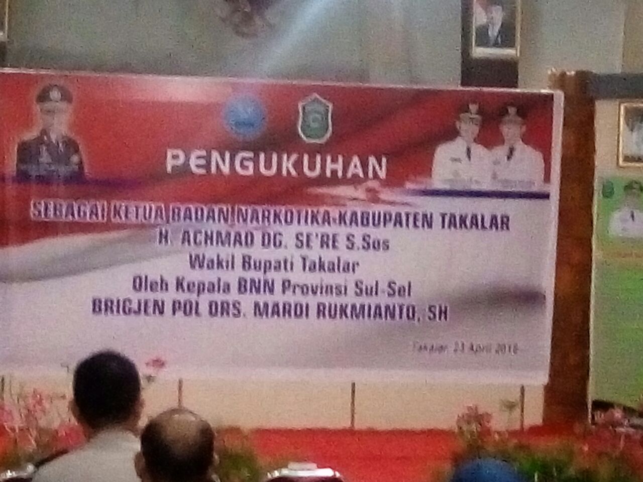 Wakil Bupati Takalar yang akrab disapa Haji De’de dikukuhkan oleh Kepala Badan Narkotika Negara (BNN) Sulsel, Brigjen Pol Drs Mardi Rukmianto disaksikan Kepala Kejaksaan Negeri Takalar, Samsul Bahri, Kalapas Kelas II B Takalar, Kapolres Takalar, Kodim 1426/Takalar, ormas dan OKP Kabupaten Takalar.