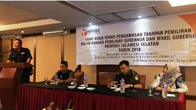 SULSELBERITA.COM. Takalar – Dalam rangka  Pemilihan Gubernur (Pilgub), Panitia Pengawas Pemilihan Umum (Panwaslu) Kabupaten Takalar melakukan rapat kerja (raker) teknik pengawasan tahapan pilkada yang tersisa beberapa waktu lagi di Hotel Grand Celino Makassar, Selasa (24/4/2018).
