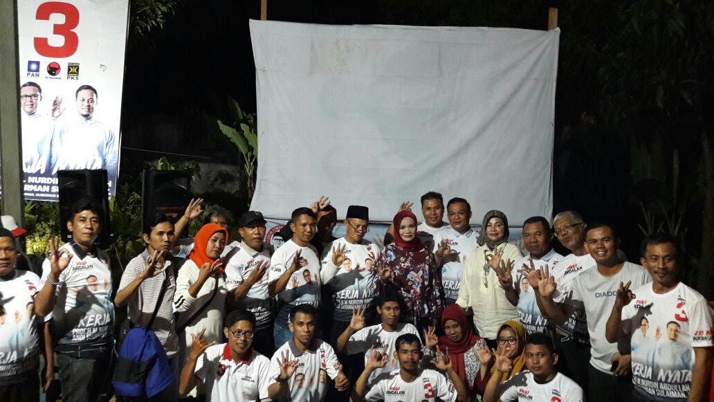 SULSELBERITA.COM. Makassar – Isteri Calon Gubernur nomor urut 3, Liestiaty F. Nurdin Abdullah mengunjungi semua lokasi nonton bareng Debat Kandidat Pilgub Tahap III yang dilakukan oleh Relawan Prof Andalan, termasuk yang dilaksanakan oleh Forum Komunikasi Relawan Prof Nurdin Abdullah-Andi Sudirman Sulaiman di Rumah Besar (Posko) Forkom, Jalan Perintis Kemerdekaan, Makassar, Rabu (9/5/2018).