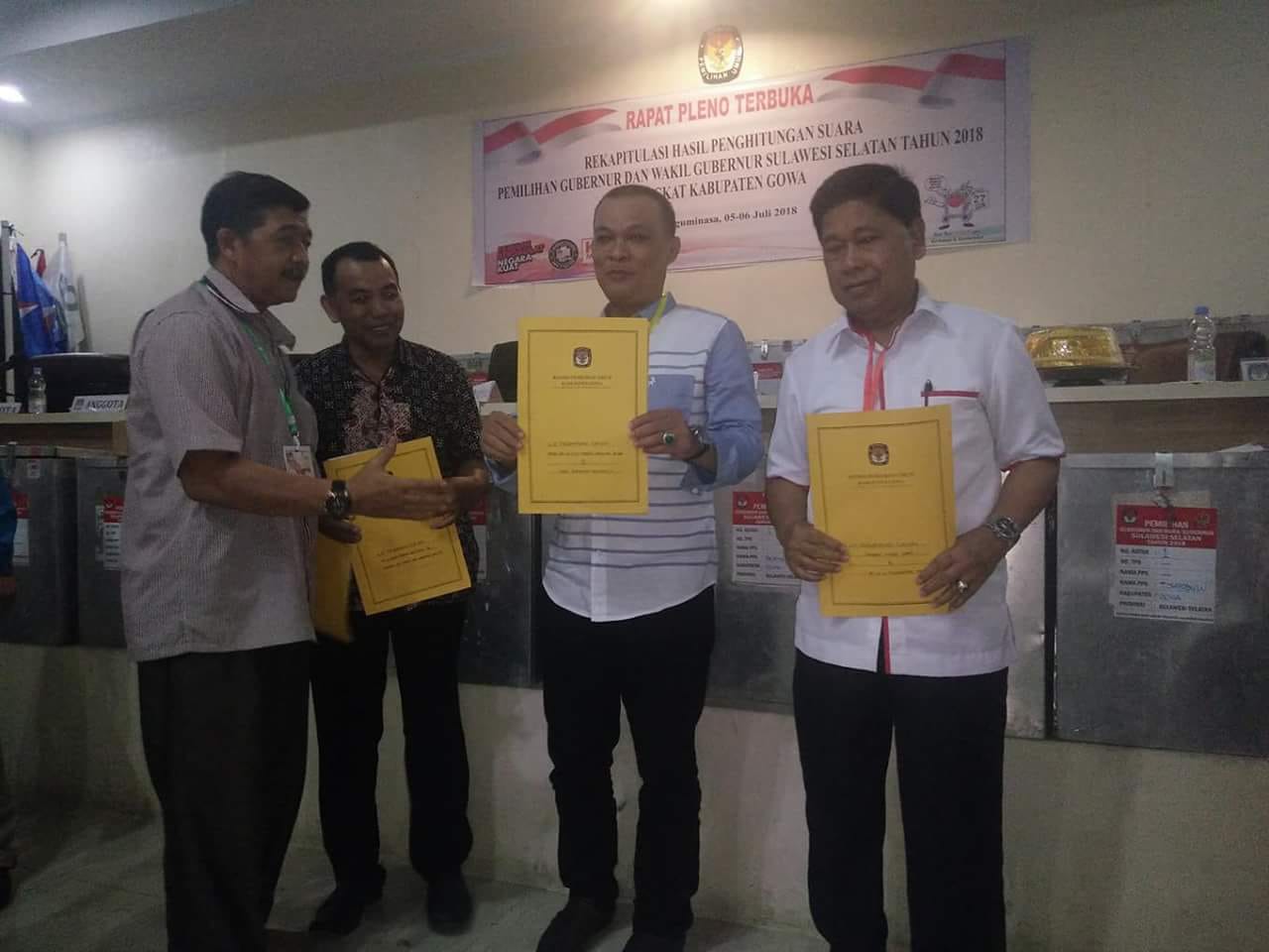 SULSELBERITA.COM. Gowa – Komisi Pemilihan Umum (KPU) Kabupaten Gowa telah menetapkan hasil rekapitulasi perolehan suara untuk Pilgub Sulsel, Kamis (5/7/2018).