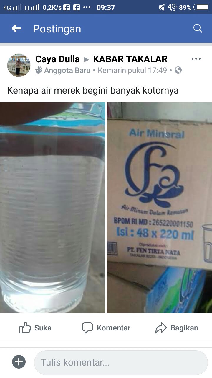 Namun janji dari pihak perusahaan untuk menarik kembali air kemasan yang sudah beredar tersebut, ternyata tidak terbukti, alias BOHONG, hal tersebut terungkap saat salah seorang Nitizen pengguna Facebook atas nama Caya Dulla, memposting gambar air gelas kemasan merek FA di group Kabar Takalar, dan menuliskan kalimat “Kenapa air merek begini banyak kotornya”. postingan yang buat pada hari minggu, 26/8/2018, langsung diserbu oleh ratusan Nitizen, dan rata rata mereka mengeluhkan pernah membeli air tersebut, yang kondisinya sama dengan apa yang di posting.