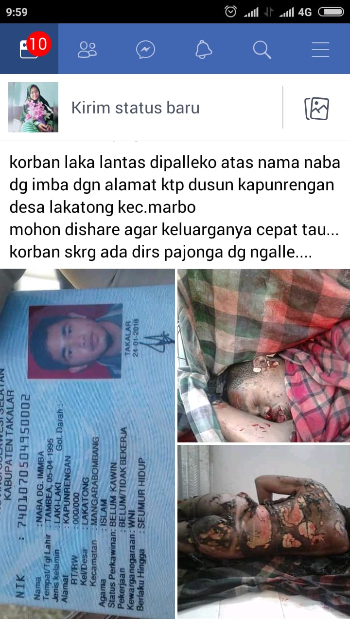 Diketahui, Wabup Takalar, H. Achmad Dg Se’re S.Sos melayat di rumah duka korban Laka Lantas di Palleko, Kec. Polut Alm. Naba Dg Ngimba di Dusun Kapunrengan, Desa Lakatong, Kec. Marbo, berkat informasi yang viral di sosial media, dengan berdasarkan KTP korban yang masih utuh dan tidak ikut terbakar.