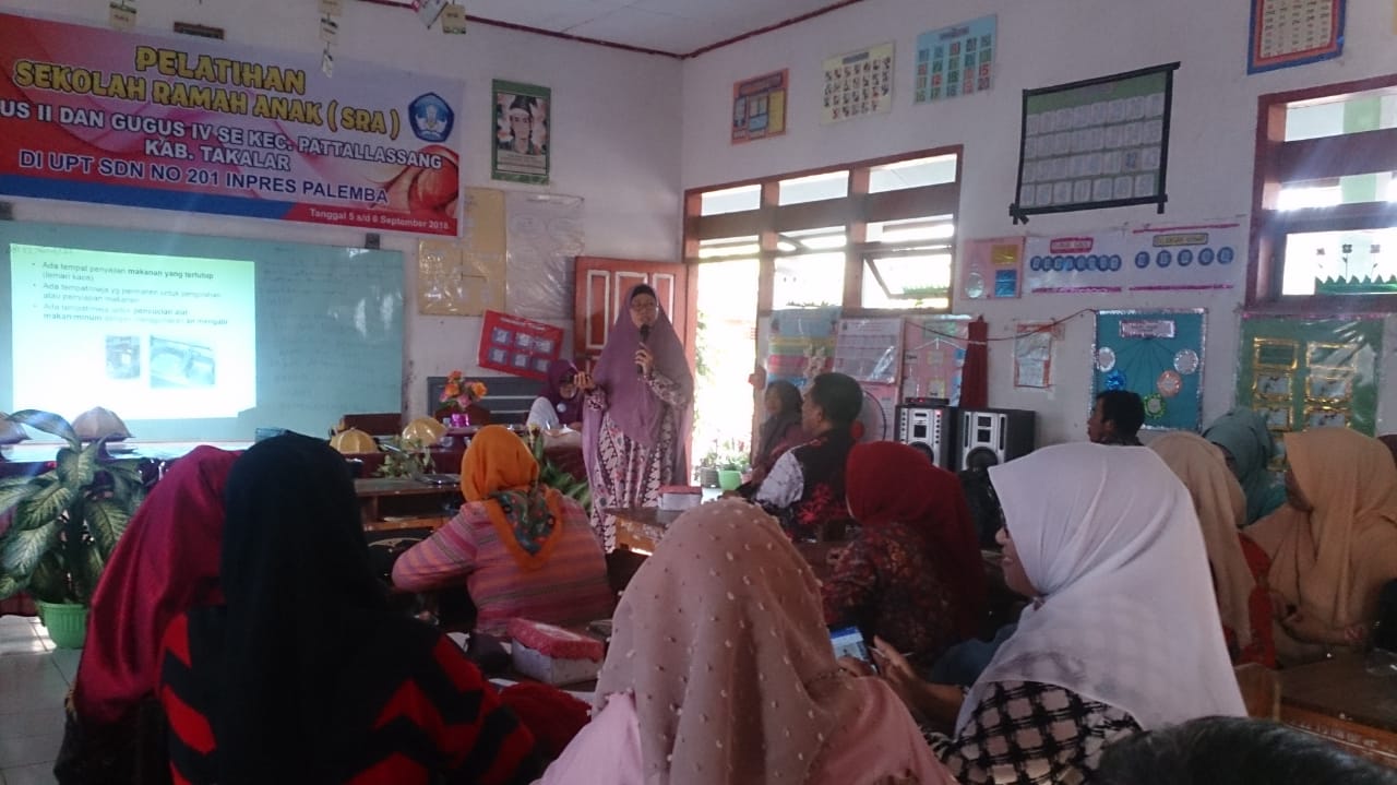 SULSELBERITA.COM. Takalar – Rabu tanggal 4 september 2018, gugus II dan gugus IV se kecamatan Pattallassang kab. Takalar melaksanakan pelatihan sekolah ramah anak (SRA), pelatihan tersebut dibuka secara resmi oleh Tim Teknis Sekber Kab. Takalar yang diwakili oleh bapak Zainuddin Dg Tola, Nur Amin Dg Sija, Bansuhari Dg Baji dan dr. Salmah.