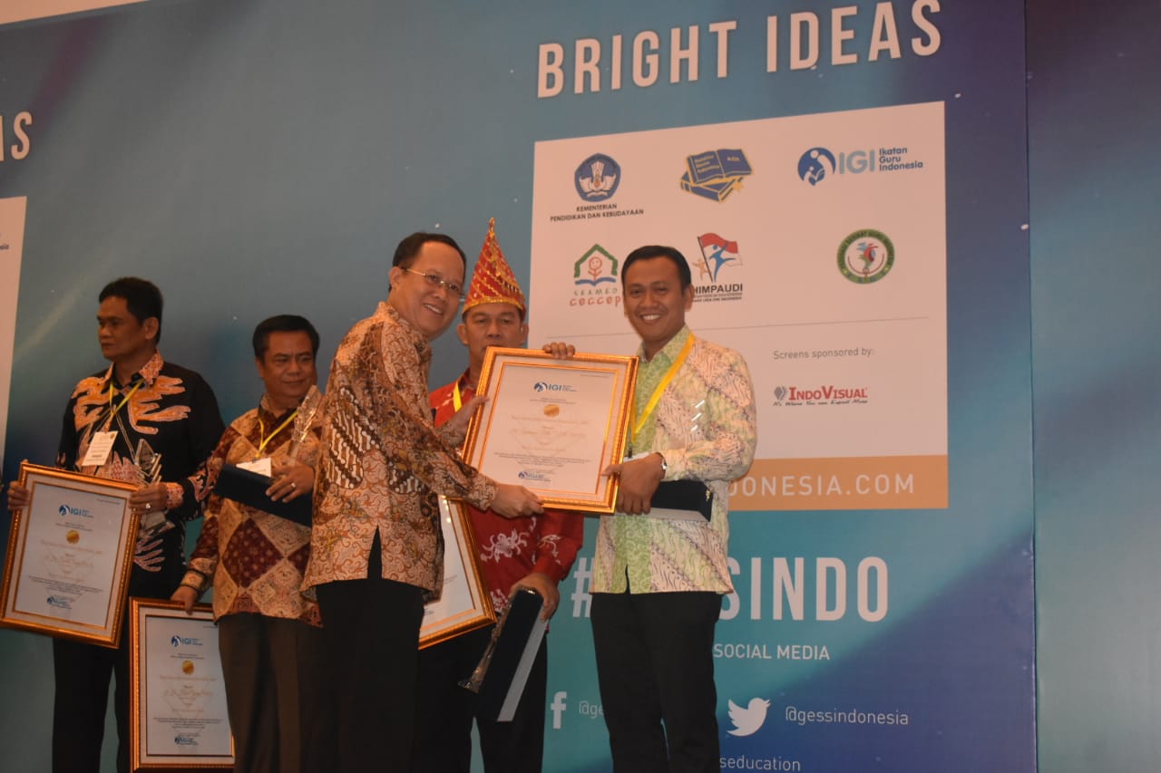Penghargaan yang diinisiasi oleh Pengurus Pusat Ikatan Guru Indonesia(IGI) tersebut diserahkan langsung oleh Ketua IGI Muh. Ramli Rahim di Jakarta Convention Center pada hari Jumat 28 September 2018