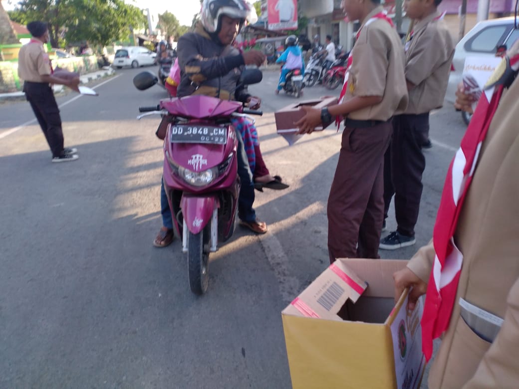 SULSELBERITA.COM. Takalar – Sebagai salah satu bentuk kepedulian dan rasa kemanusian bagai para korban gempa dan tsunami Palu, Sigi dan Donggala Sulawesi tengah, hari ini DKC bersama Gugus Depan SMA Negeri 1 Takalar dan Gugus Depan SMP Negeri 2 Takalar,  dengan Jumlah relawan pramuka kurang lebih 80 orang, adakan “Bumbung” kemanusiaan atau aksi penggalangan dana. (jumat, 5/10/2018).
