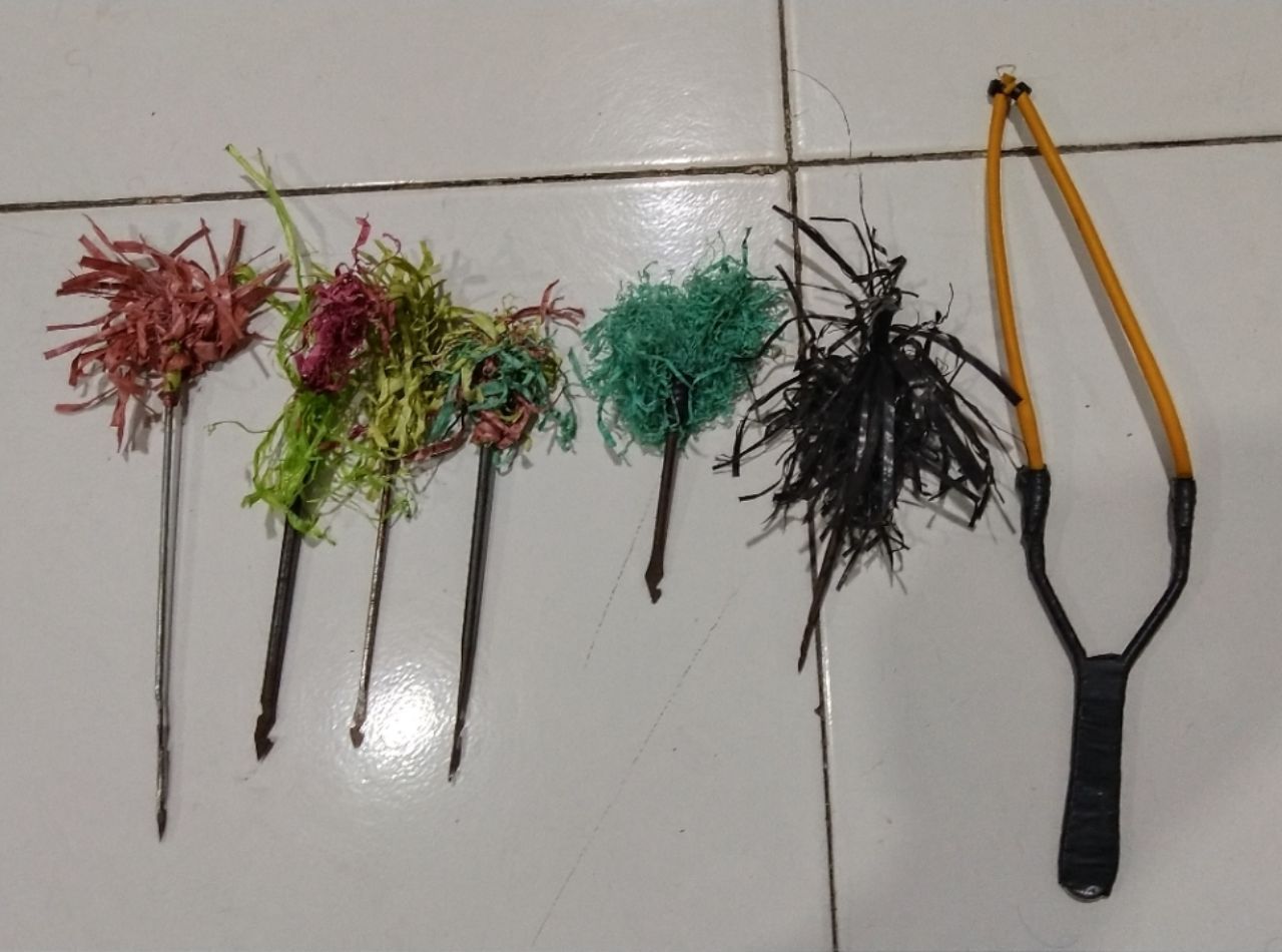 Bermula dari situ, Petugas langsung mengejar kendaraan tersebut. Berkat kecekatan Petugas, kedua Pemuda tersebut berhasil diamankan, Saat kedua pelaku tersebut dilakukan penggeledahan didapati dikantong celana R (17) Lk, sebuah Ketapel/pelontar dan 6 mata busur.