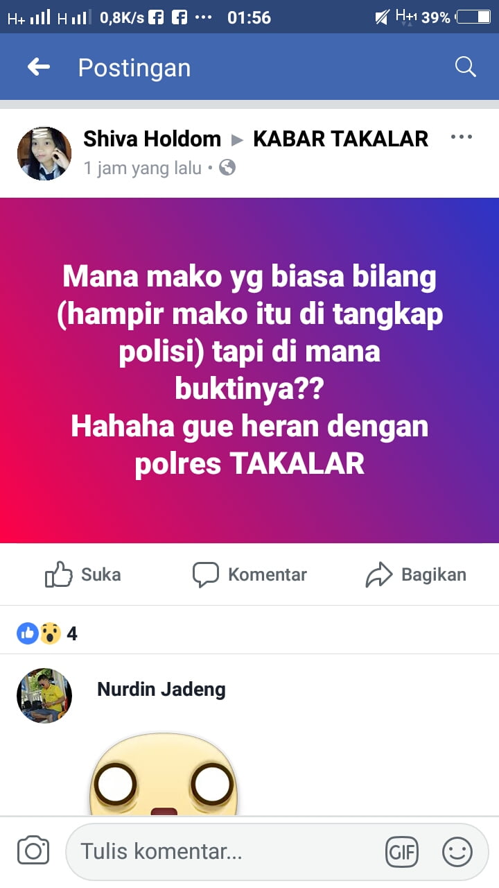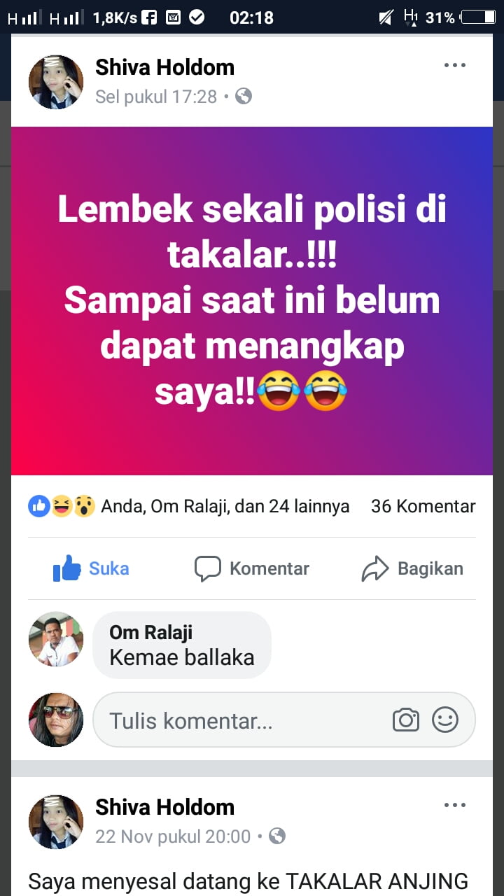 Hahaha gue heran dengan polres TAKALAR”. Posting Shiva Holdom di Group Diskusi Kabar Takalar.