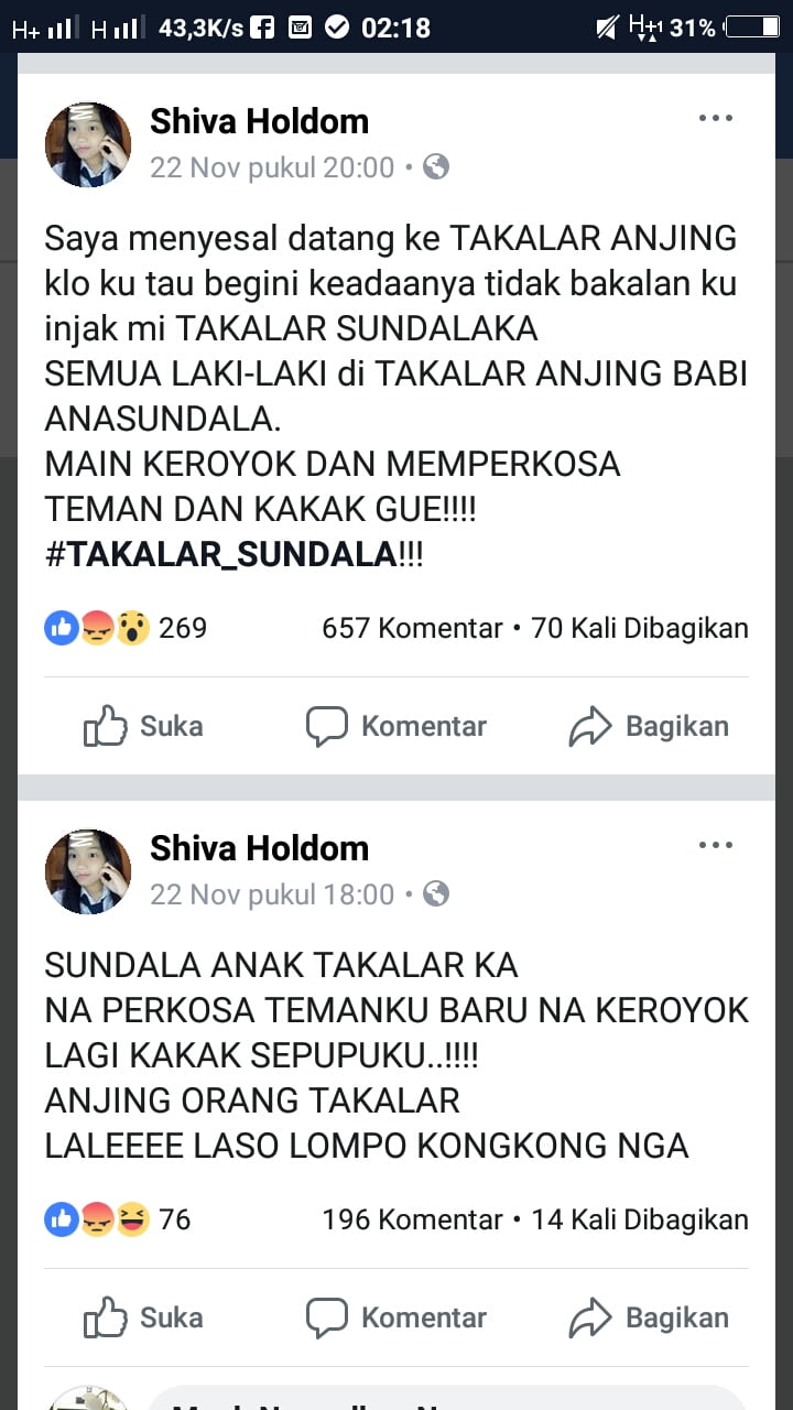 Beberapa postingan Shiva Holdom sebelumnya bahkan menghina dan melecehkan semua warga group Diskusi Kabar Takalar, “Nai nai rewa ri Kabar Takalar  mange mako ri nakke s*nd*la!! Punna parallu si tobokki!! (Siapa yang berani di Kabar Takalar? Silahkan datang pada saya, kalau perlu kita baku tikam).