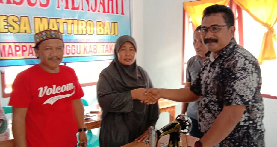 Selain hadir dalam gelar kegiatan Kursus Dan pelatihan menjahit di Desa Mattiro Baji, Camat Mappakasunggu Juga memberikan Bantuan secara symbolik Berupa Mesin Jahit 8 Unit kepada Warga di Dampingi Oleh Sekretaris Desa Mattiro Baji Rustam Sila.