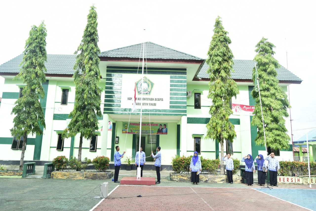 SULSELBERITA.COM. Sinjai – Kantor Kementerian Agama Kabupaten Sinjai menggelar kesadaran nasional bertempat di halaman Kantor Kementerian Agama Kabupaten Sinjai. Pelaksanaan upacara bendera Hari bersekolah yang digunakan oleh seluruh ASN Kantor Kementerian Agama Kabupaten Sinjai Para Kepala Seksi / Pengorganisasi dan Pengawas Agama Islam dan Pengawas Madrasah dan Kepala KUA Kecamatan Sinjai Utara dan PTT pada Kantor Kementerian Agama Kabupaten, dengan Pembina Upacara Kepala Seksi Pendidikan Madrasah Dra Kamriati Anies M.Pd.I, Senin (17/12/18)