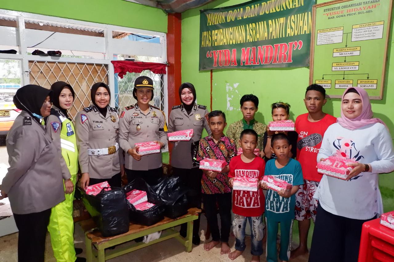 Peringati Hari Ibu, Polwan Polres Gowa Bagi-Bagi Nasi Kotak Ke Panti Asuhan dan Tukang Bentor