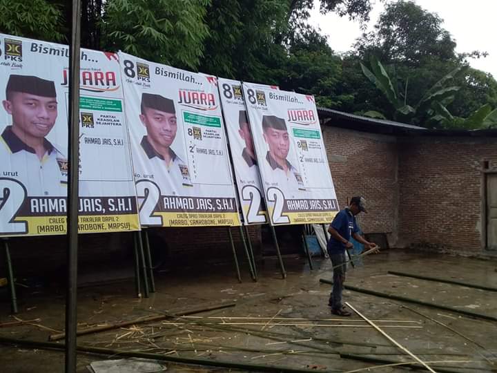 SULSELBERITA.COM. Takalar – Ratusan kader dan relawan pendukung Caleg PKS Dapil II (Mapsu, Sanrobone, Marbo) Muh.Jais, kini bergerak serentak di tiga Kecamatan, untuk melakukan sosialisasi dan pemasangan APK, berupa baliho dan Banner.