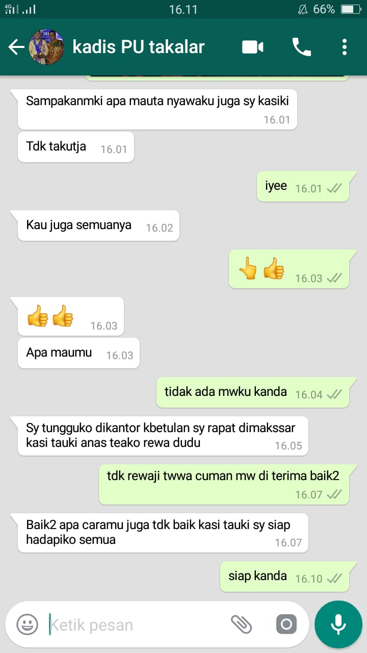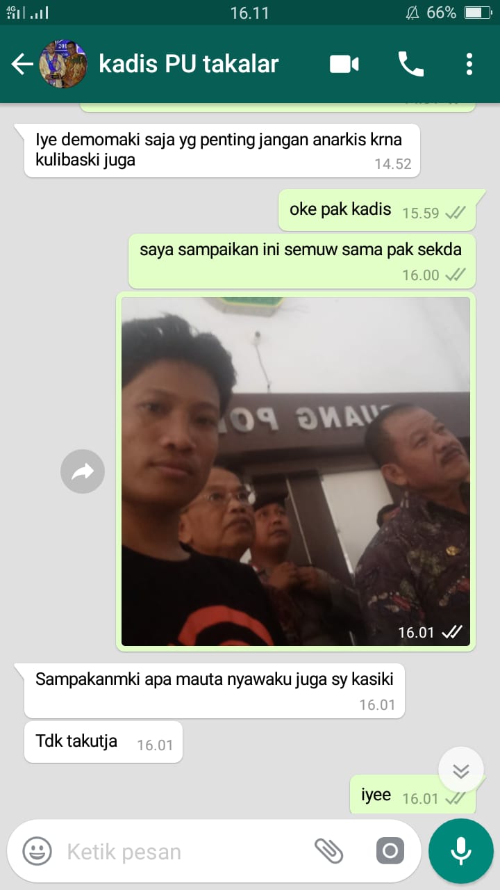Plt Kadis PU Takalar Ancam “Libas” Demonstran Melalu Aplikasi Whatshapp