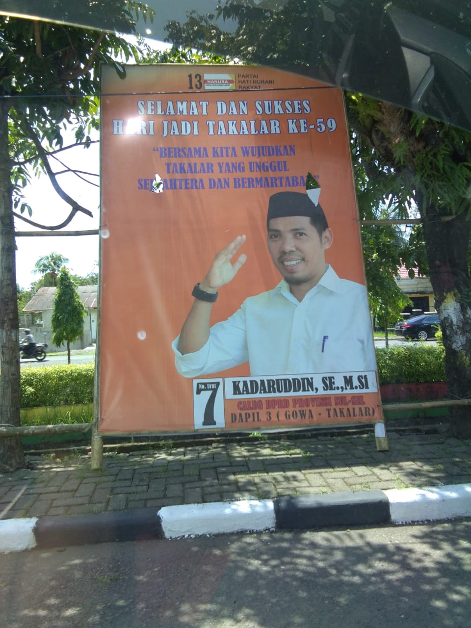 SULSELBERITA.COM. Takalar – Penertiban Alat Peraga Kampanye (APK) Peserta Pemilu Dikabupaten Takalar Diduga Tebang Pilih, pasalnya penertiban banner, baliho dan spanduk Caleg ternyata tidk semuanya dibersihkan oleh Satpol PP.