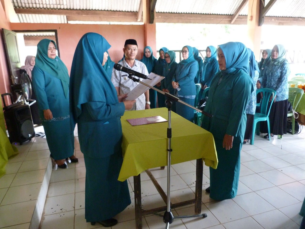Camat Polongbangkeng Selatan Baharuddin,.S.Sos.,M.Si, para Anggota T.P PKK Kabupaten dan T.P PKK lurah/desa hadir dalam pelantikan tersebut.