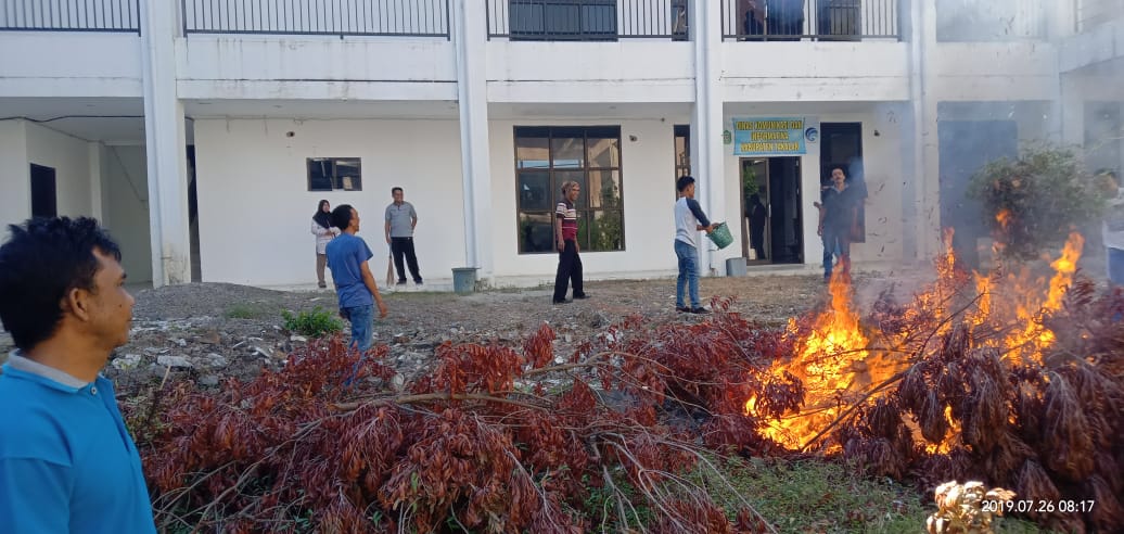 Tumpukan sampah sisa pemangkasan pohon yang sudah lama di halaman sekretariat, dibersihkan dan dibakar. Kegiatan Kerja Bakti ini dipimpin langsung oleh Kepala Dinas Kominfo, H.Haeruddin Mallingkai bersama Kepala bidang dalam jajaran Kominfo, dan dihadiri Puluhan staf Dinas Kominfo.