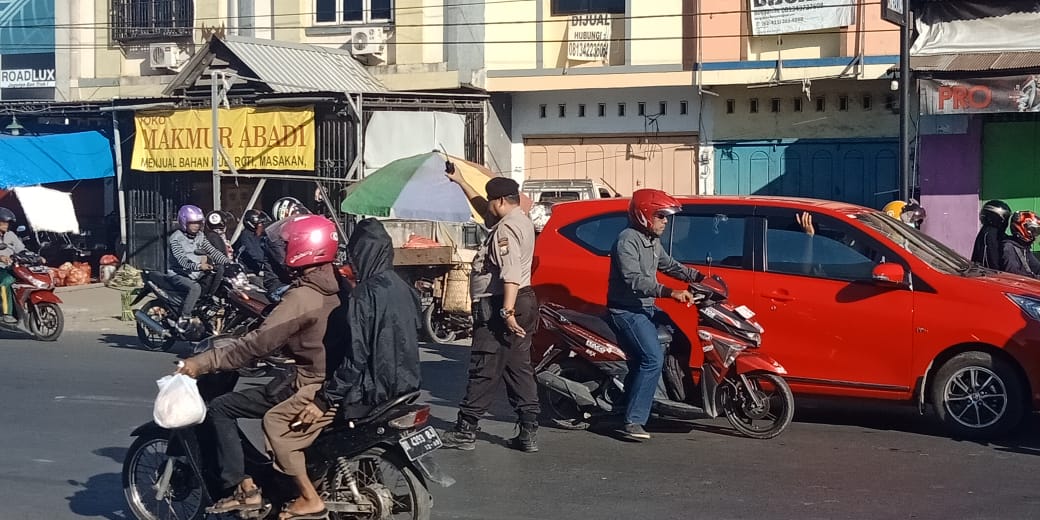 Seperti terlihat dijalan poros Kec Pallangga, tiga orang personil tengah melakukan pengaturan lalulintas yang dipimpin langsung Kanit Binmas Polsek Pallangga Aiptu Syamsualam, tujuannys untuk mengurai kemacetan lalulintas.