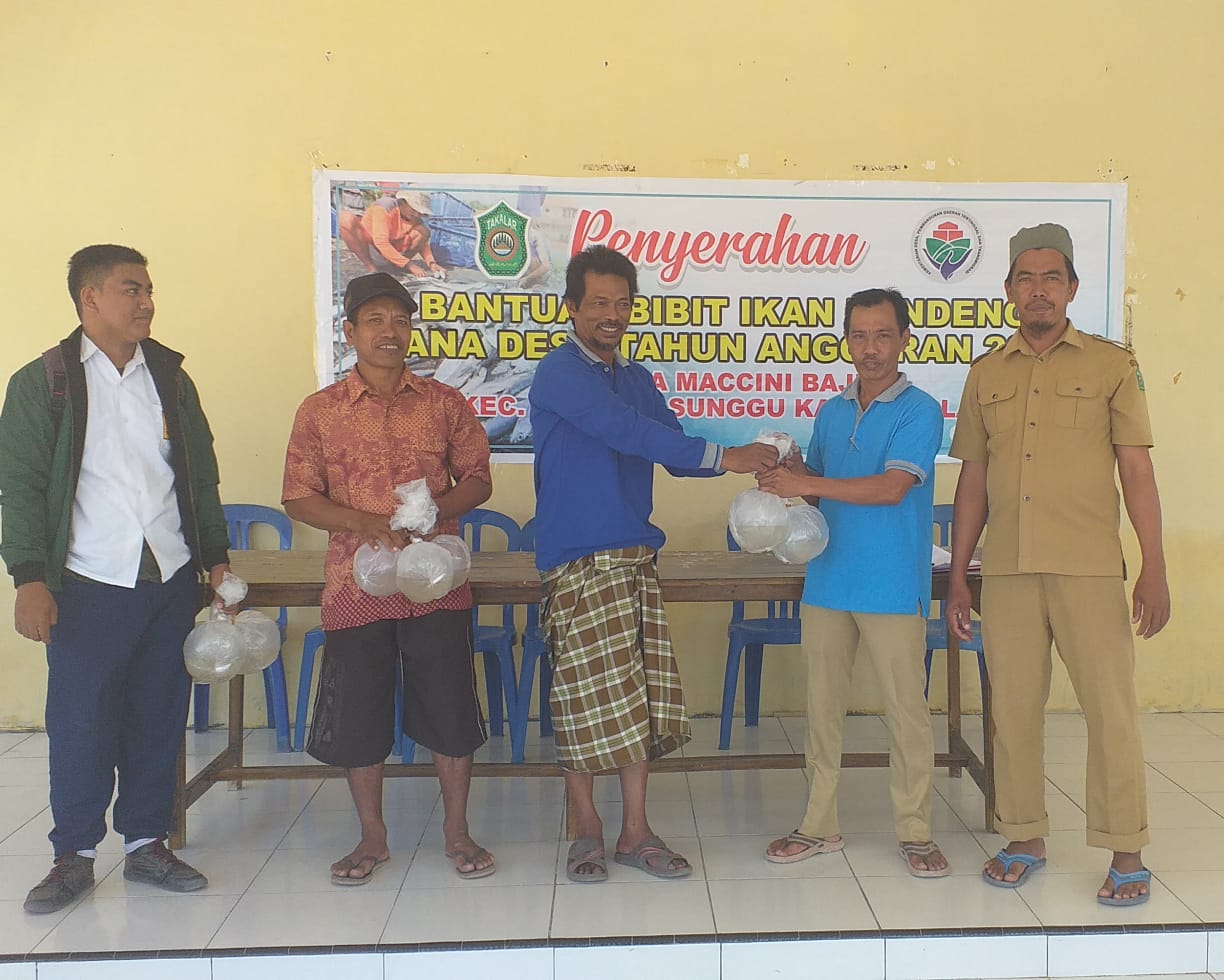 Kades Maccinibaji Serahkan Bantuan 800 Ribu Ekor Bibit Bandeng pada 120 Orang Warganya