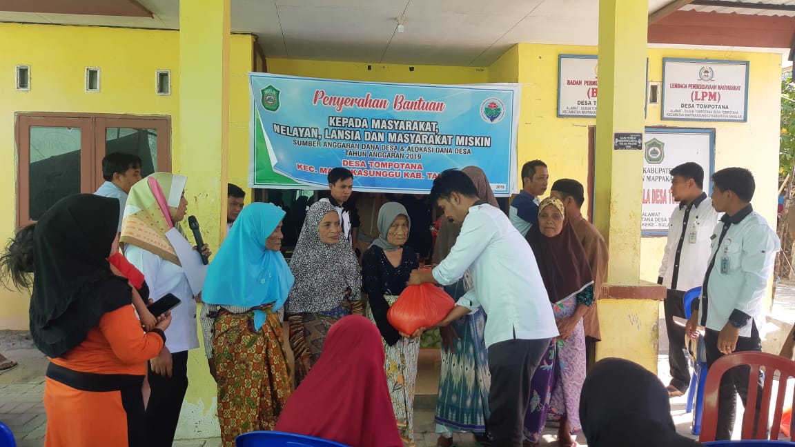 SULSELBERITA.COM. Takalar – PLT Kepala Desa Tompotana Kec.Kepulauan Tanakeke Kab.Takalar, SUPRIADI, SE, M.Si, hari ini menyerahkan bantuan beras kepada 46 warga lansia (Lanjut Usia) yang merupakan warga Desa Tompotana. Rabu, (31/7/2019).