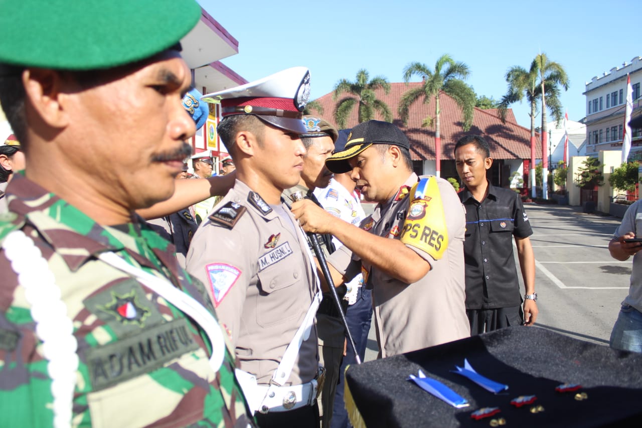 Operasi Patuh 2019 Dimulai, Kapolres Gowa Sematkan Pita Biru Putih ke Bahu Personil Terlibat