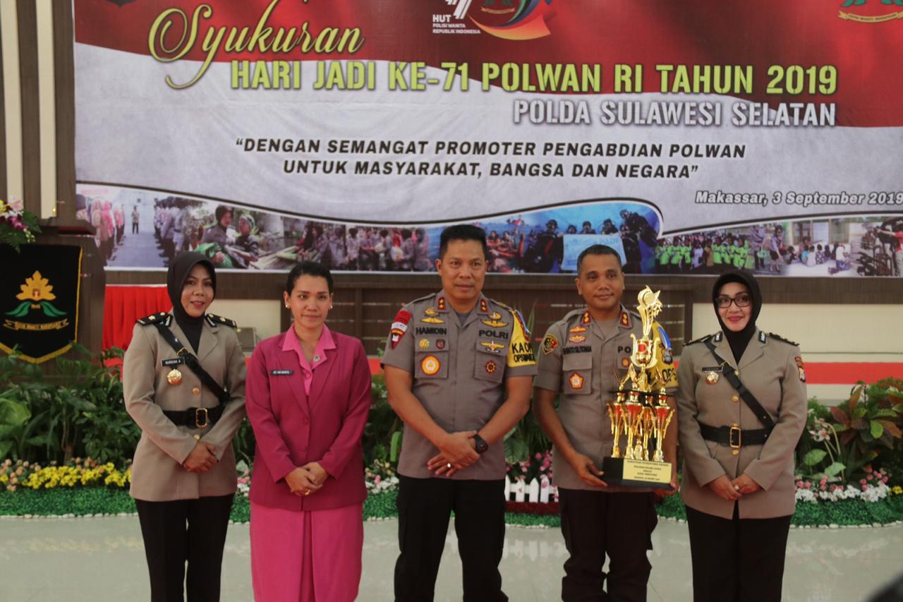 Pemberian thropy ini diserahkan langsung melalui Kapolda Sulsel Irjen Pol Drs. Hamidin kepada Kapolres Gowa Akbp Shinto Silitonga, SIK., MSi pada Selasa (03/09) pagi, dalam acara syukuran HUT ke-71 Polwan di Aula Mapolda Sulsel.