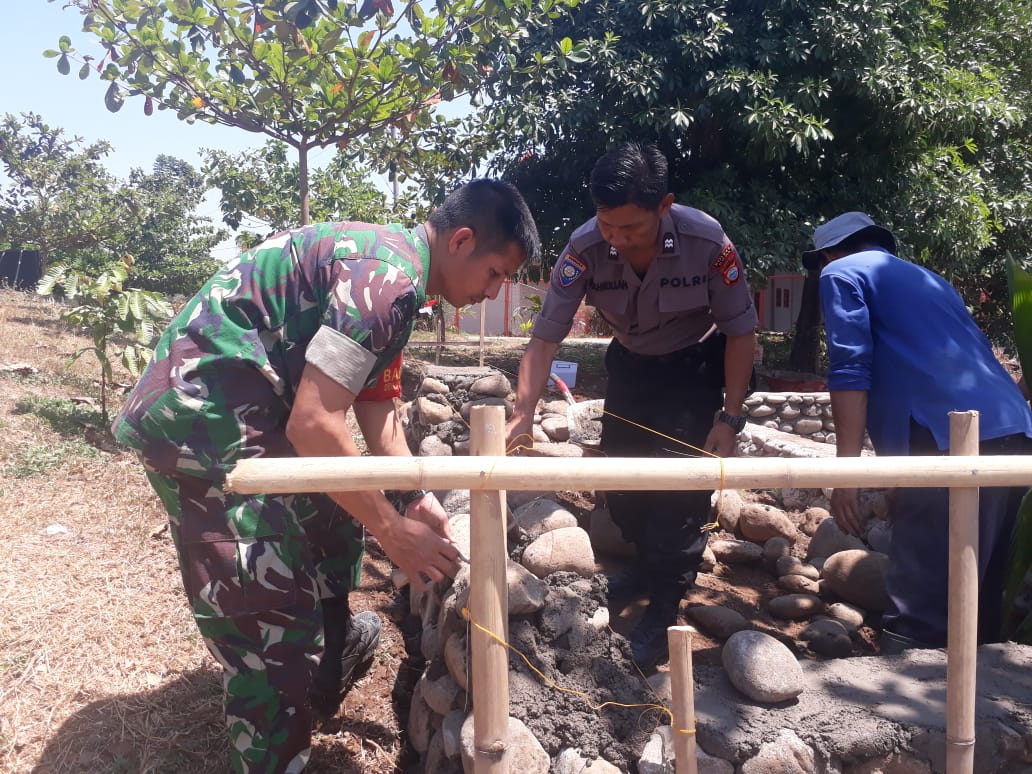 Nampak terlihat jelas dilokasi kekompakan antara Bhabinkamtibmas Babinsa dan warga bahu membahu dalam membuat Fondasi Taman dan Pos Jaga, ini merupakan salah satu bukti nyata kekompakan Tni Polri dan masyarakat.
