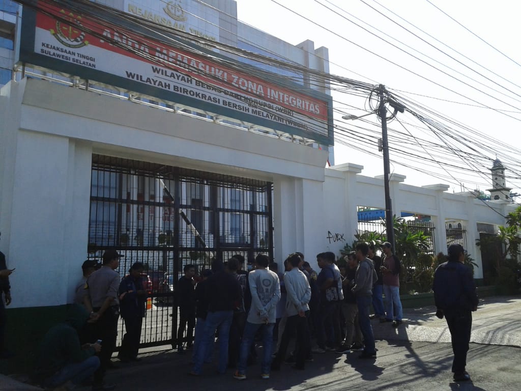 Dari pantauan awak media, Massa aksi tampak melakukan orasi secara bergantian dengan megaphone. Serta Membentangkan spanduk bertuliskan kritikan-kritikan kepada pihak Kejati Sulsel,
