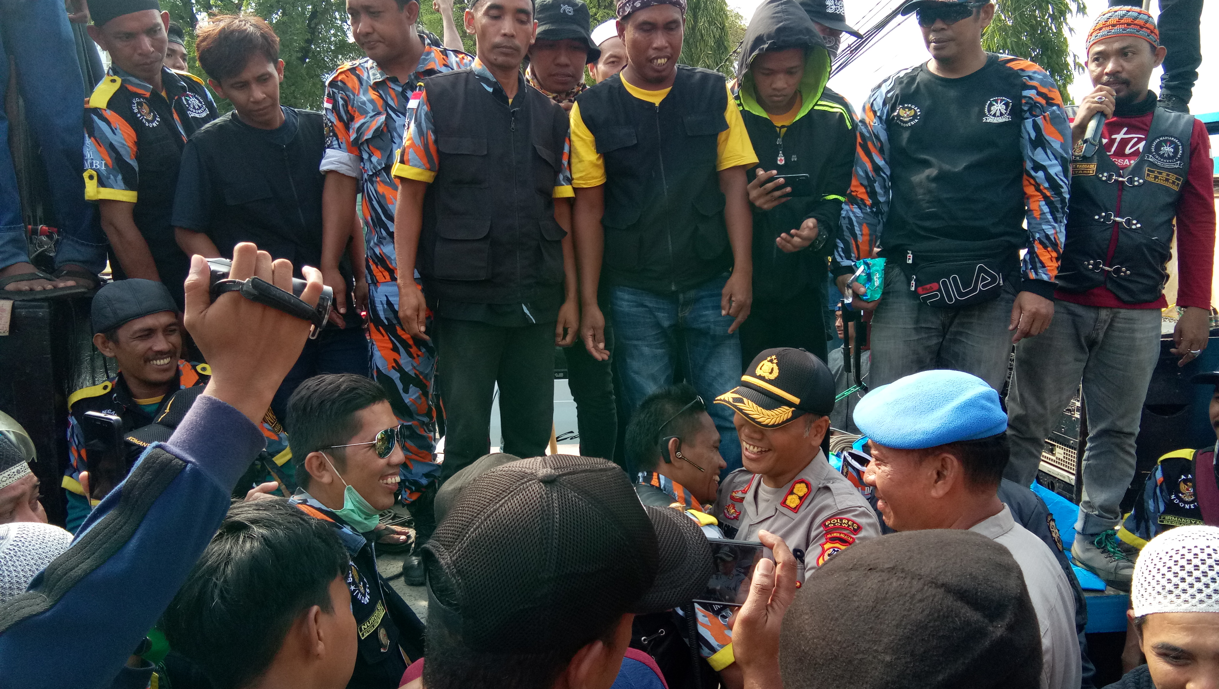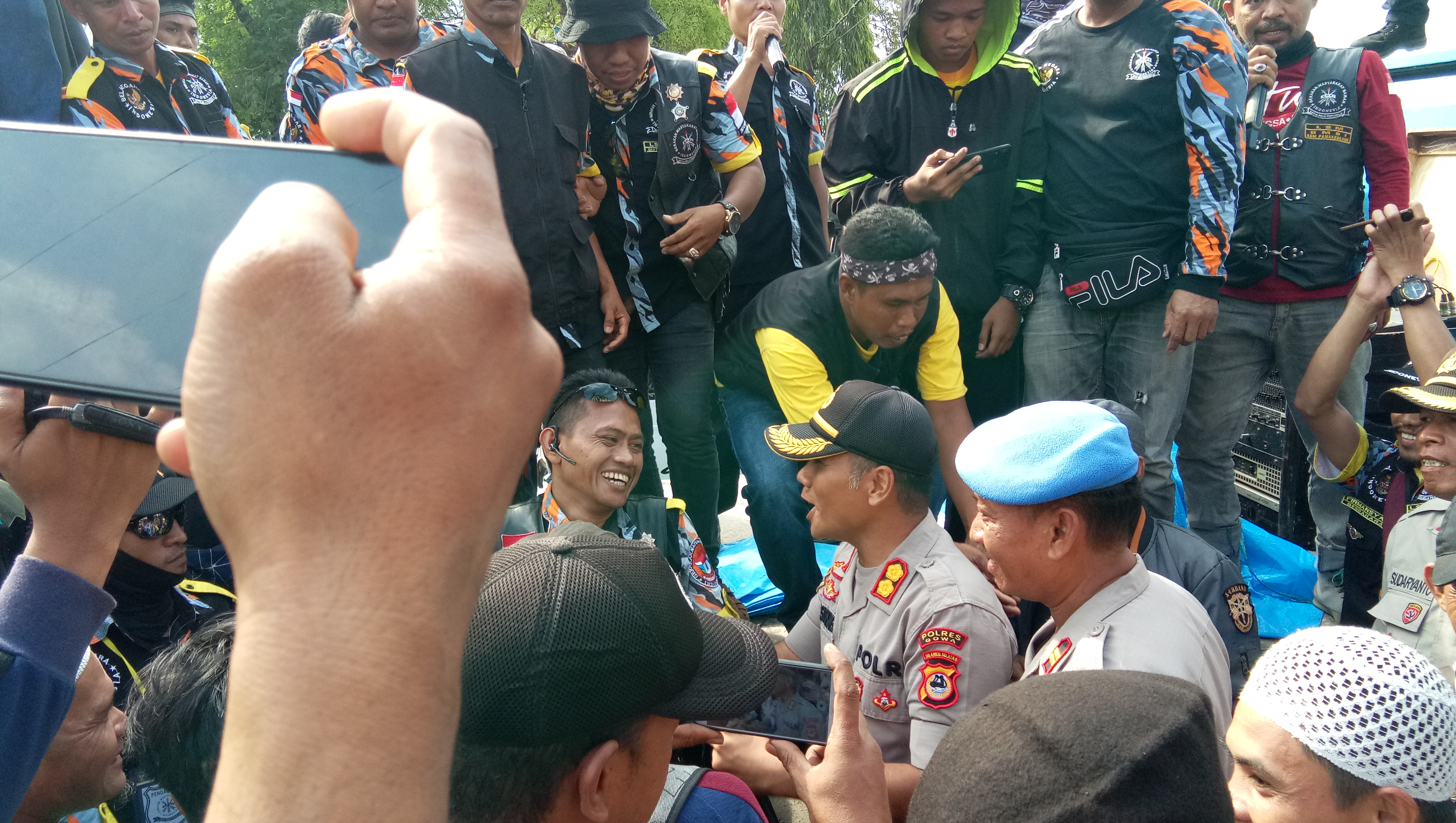 Saat menemui para pengunjuk rasa Kapolres Gowa langsung disambut antusias oleh para pengunjuk rasa dengan ucapan terima kasih dan memberikan semangat serta bersalaman.