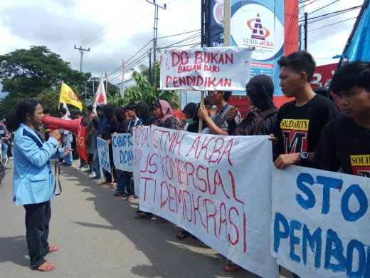 Aksi ini dilakukan untuk menuntut pembatalan sanksi Drop Out terhadap 11 orang pimpinan lembaga kemahasiswaan di STIMIK AKBA. Mereka diantaranya, Misbahuddin (Presiden BEM), Hisbullah Latif (Ketua HIMTI), Wahyu (Ketua Himasisfor), Hardi Saleh (Ketua PMKO), Iksan Umar (Ketua MPM),  Naufal Hadsiq (Staff kesekretariatan BEM),  Doni Elyona (Kemendagri BEM), Fathur Rahman Nasir (Kabid Kesekretariatan HIMTI), Resko (Kabid IPTEK HIMTI), Syukran Abbas (Dimisioner pengurus HIMTI),  Rais Ayyub (Sekjen BEM)