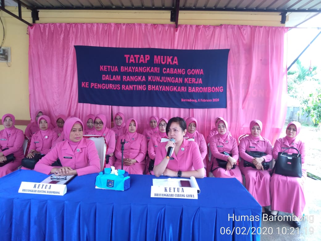 SULSELBERITA.COM. Gowa,- Ketua Bhayangkari Cabang Gowa Ny.Hana Boy Samola melaksanakan kunjungan kerja ke Polsek Barombong menemui Pengurus dan anggota Bhayangkari Ranting Barombong , kamis (06/02/2020).