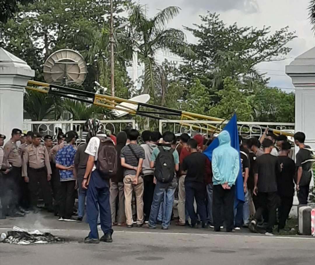Jenderal lapangan Wahyu Dwi Restu.dalam orasinya menuntut agar Kadis Pendidikan Kab.Takalr dipanggil dan dihadirkan ke tengah tengah mereka untuk berdialog.namun hingga hampir satu jam lamanya Muh.Rusdi tak kunjung datang.