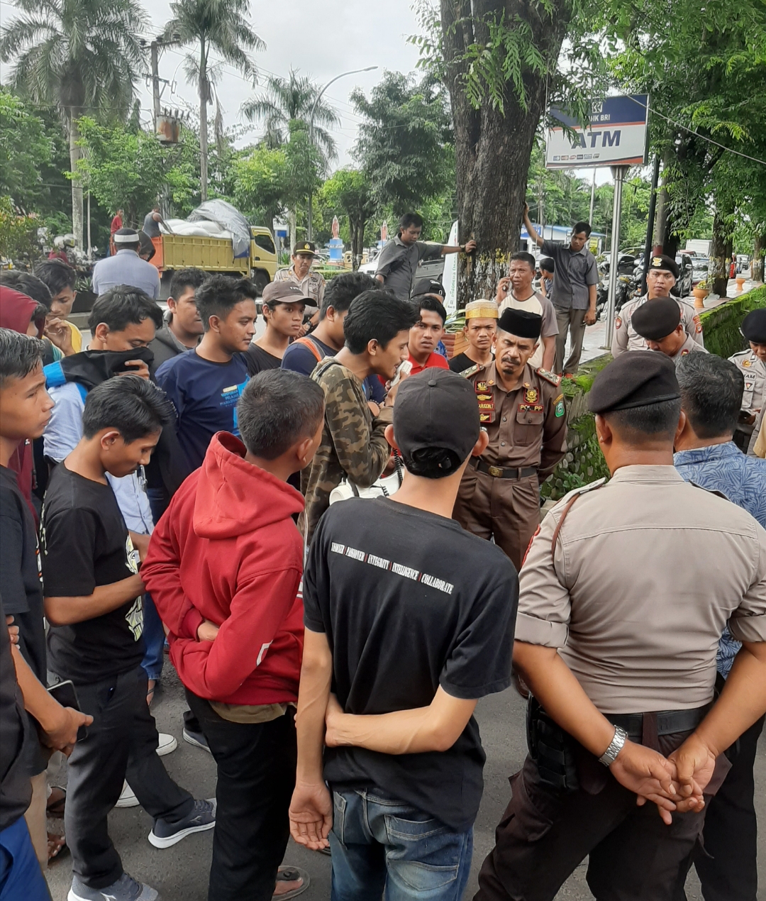 Kabid Tramtib Satpol PP Takalar Syafaruddin, mencoba untuk menyampaikan bahwa dirinya sudah dari Dinas Pendidikan untuk menyampaikan tuntutan mereka agar bisa hadir menemui para pengunjuk rasa.