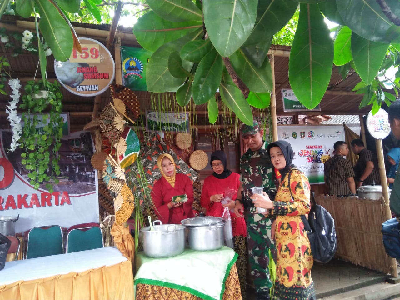 SULSELBERITA.COM. Surakarta – Kodim 0735 Surakarta dan Persit Kartika Chandra Kirana Cabang L Dim 0735 Koorcab Rem 074 PD IV Diponegoro ikut memeriahkan dan menyemarakkan Jenang Solo 2020 dalam rangka Hari Jadi Kutho Solo Ke 275 membuka Stand dengan Menu Jenang Lemu, (17/2)