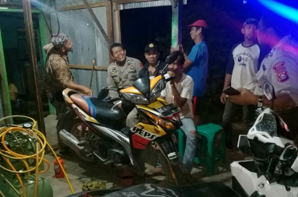 Nampak Aiptu Saryono bersama anggota dan piket fungsi dengan humanis memeriksa pengendara RD2 serta simpatik temui para pemuda yang masih nongkrong hingga dini hari dijalan Poros kanjilo Barombong untuk segera pulang .