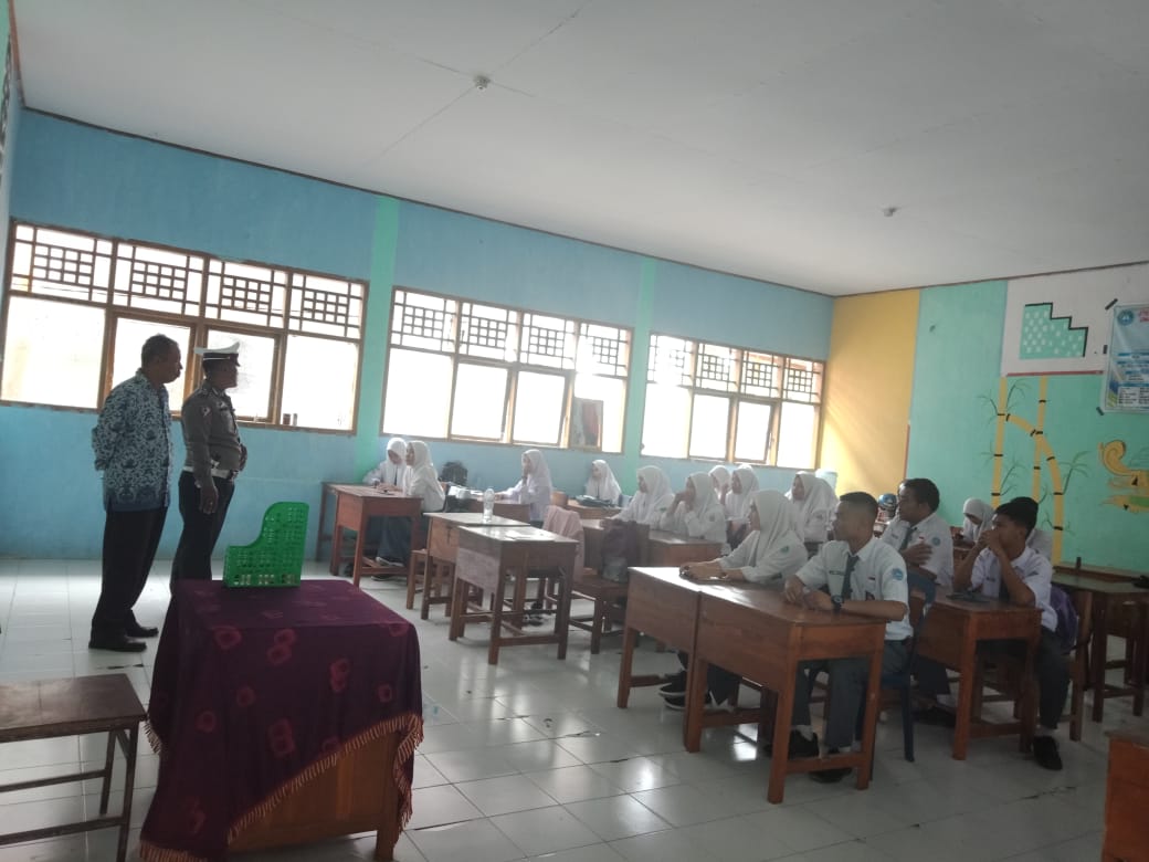 Kegiatan Sosialisasi UU No. 22 Tahun 2009 di SMPN 3 Takalar oleh Kanit Dikyasa  Aiptu Nur Alam di dampingi  personil Lantas Polres Takalar.