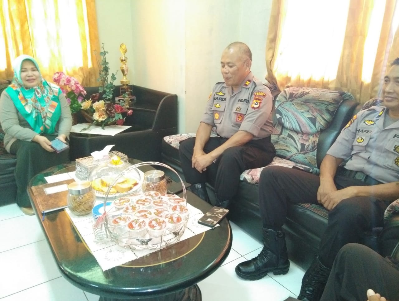 Kedatangan Kapolsek, disambut hangat oleh Kepala IP2TP Kab. gowa, Ibu DR Ir Rika Hariyani MSc. diruang kerjanya.