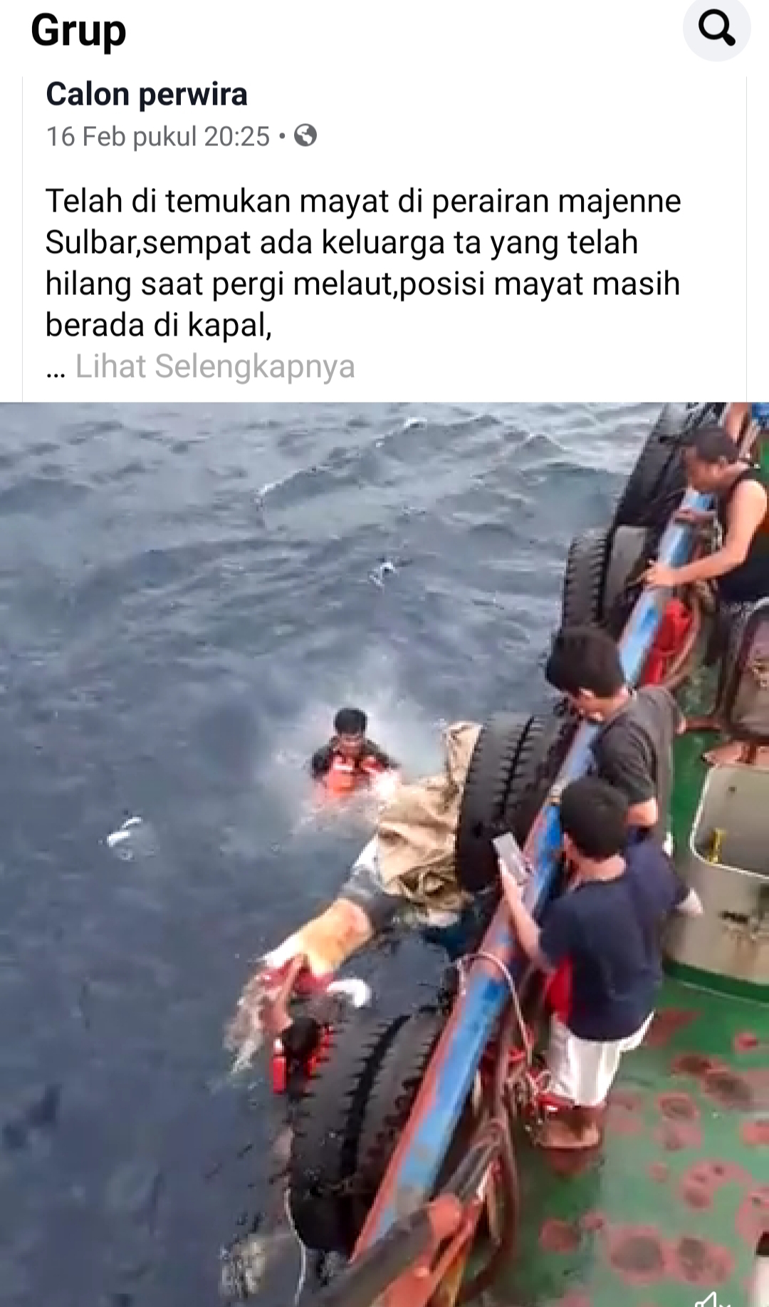 “Saya jelaskan ya, pada tanggal 16 Februari 2020 kapal TB SMT 1002 bertolak dari pelabuhan Barru menuju Samarinda,TB SMT 1002 melewati perairan Majenne, dan tidak sengaja melihat sesuatu mengapung di tengah laut, kecurigaan juru mudi Nasir melihat iyang mengapung tersebut seperti manusia, akhirnya setelah nahkoda kapal meneropong, lalu kapal di dekatkan dan ternyata itu memang manusia, dan pada malam hari ini mayat masih berada di atas kapal, dari pihak pol air Pinrang dan Majenne yang telah di hubungi belum ada penjemputan terhadap mayat yang di temukan, posis kapal saat ini berlabuh di perairan majenne”. Tulis Calon perwira yang menyertai ungvahan vidionya tersebut.