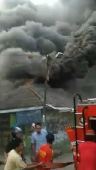 Api terlihat mulai berkobar sekitar pukul 17.50 sore, nampak sejumlah mobil pemadam kebakaran sudah berada di TKP dan tengah berjuang berusaha memadamkan api yang semakin berkobar dan membesar.