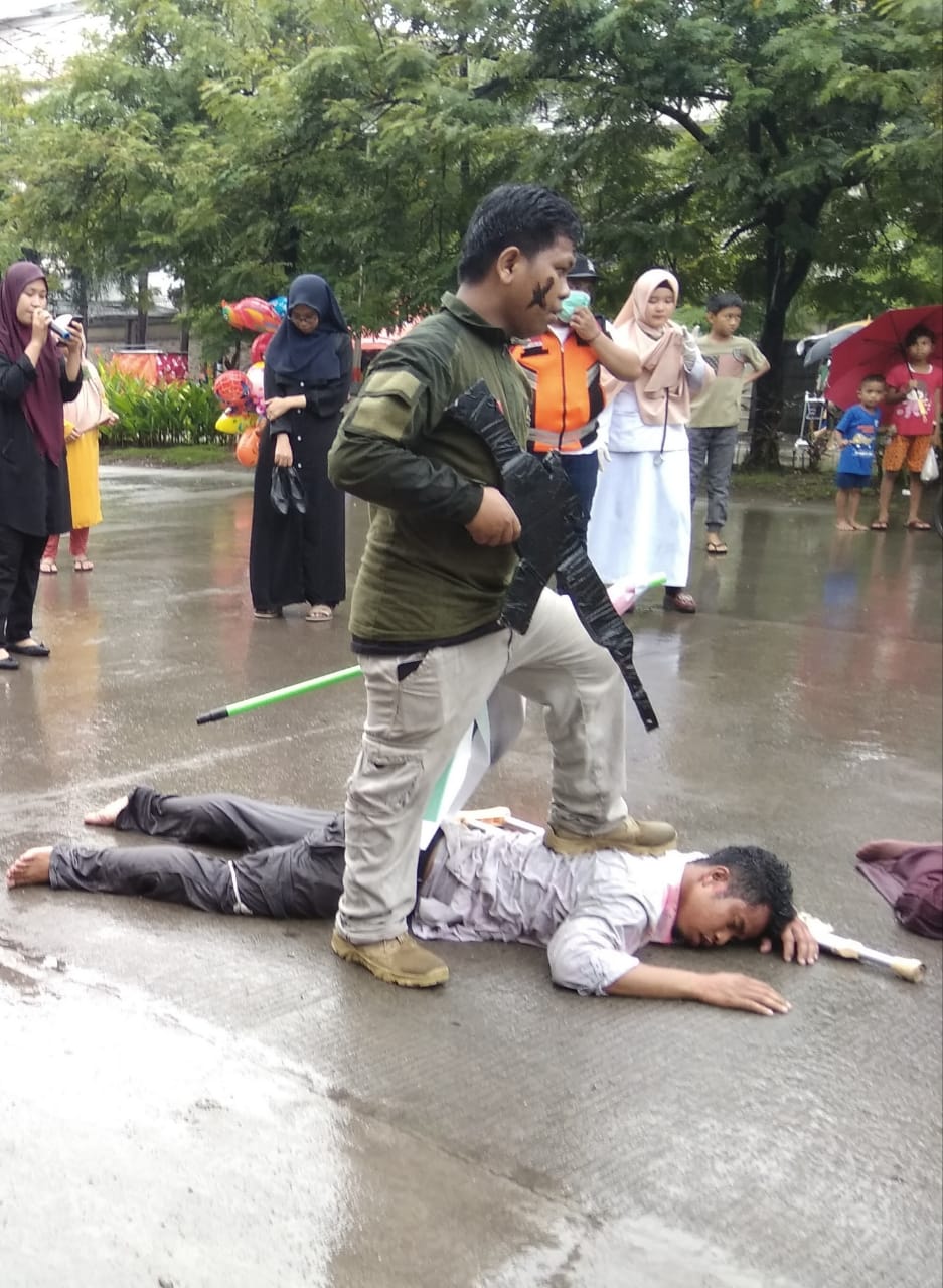 SULSELBERITA.COM. Makassar – Aksi Teatrikal Peduli Palestina oleh tim Aksi Cepat Tanggap & Masyarakat Relawan Indonesia Prov. Sulawesi Selatan @mrisulsel_ kolaborasi dengan UKM SB Al- Jazeera IPI pada kegiatan CFD di Boulevard Makassar