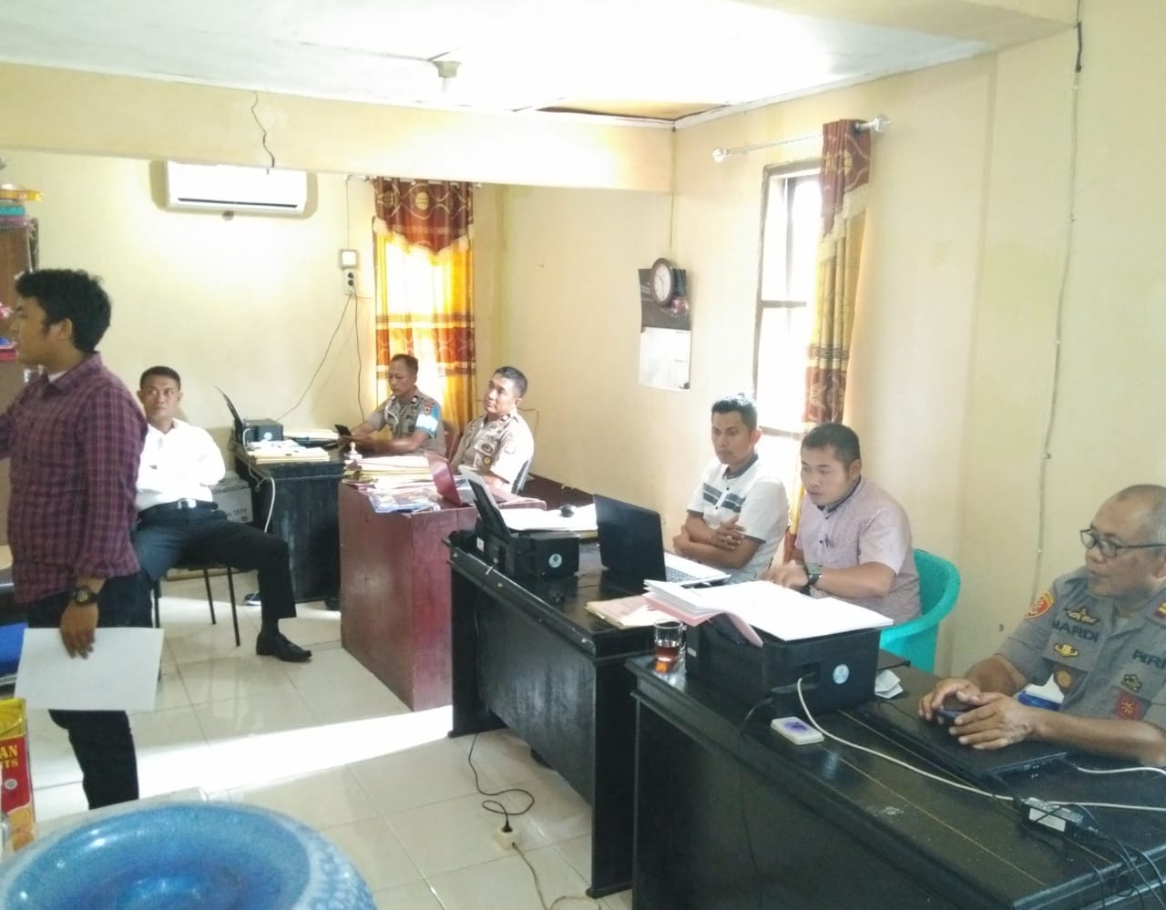 SULSELBERITA.COM. Gowa,- Kapolsek Bajeng Polres Gowa Iptu Sunardi, SH, MH memimpin giat rapat gelar perkara Tindak Pidana Penipuan, Berdasarkan Laporan polisi Nomor : Lp / 07/ I / 2020, tanggal 27 Januari 2020, terhadap korban RML (35) dengan terduga pelaku DGR (36) yang dilaksanakan di ruang Unit Reskrim, Senin (24/02/2020) Sore.