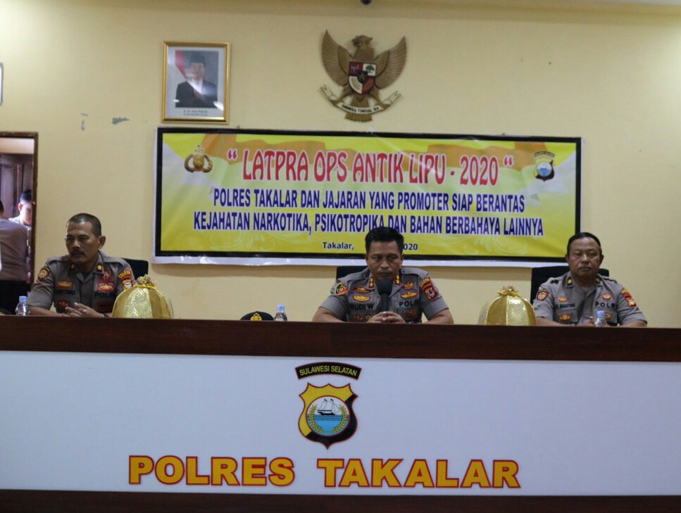 “Polres Takalar dan Jajaran yang Promoter Siap Berantas Kejahatan Narkotika, Psikotropika dan Bahan Berbahaya Lainnya”.