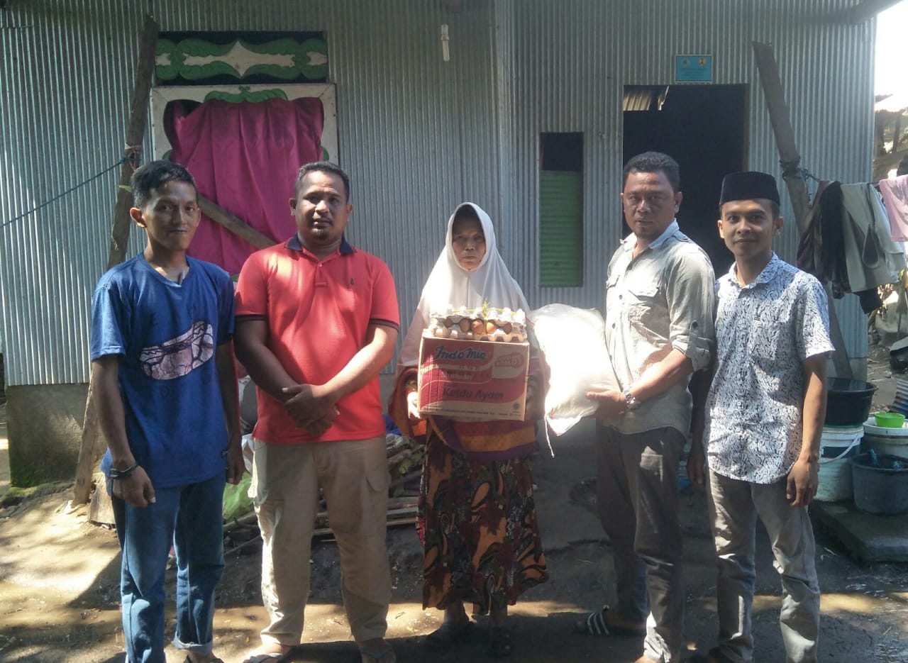 Bantuan yang di berikan berupa paket sembako yang terdiri dari Beras,telur,Mie Instan,minyak goreng dan sedikit uang belanja.