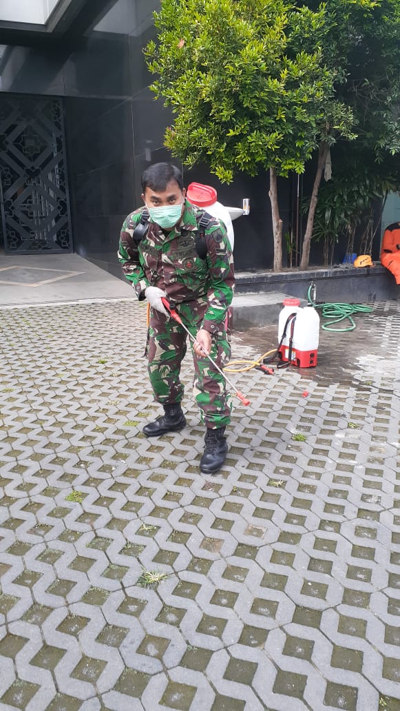 Danramil 02/Banjarsari dan Anggota Semprot Disinfektan Cegah Virus Covid 19