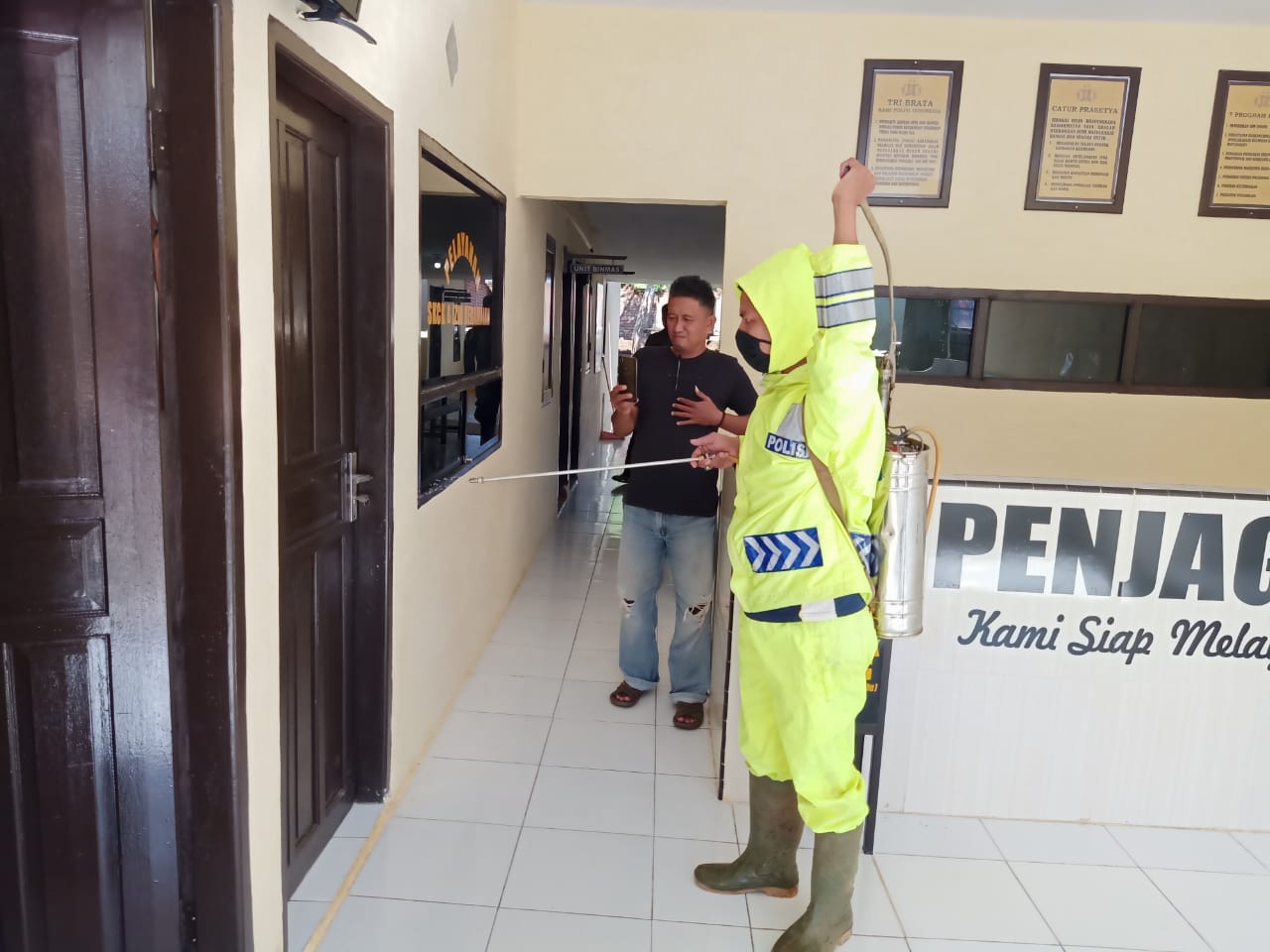 “Hari ini kami melakukan penyemprotan cairan disinfektan disetiap ruangan, Mako polsek maupun di tempat-tempat layanan publik, hal ini akan terus kita lakukan dengan lokasi yang berbeda ” ucapnya.