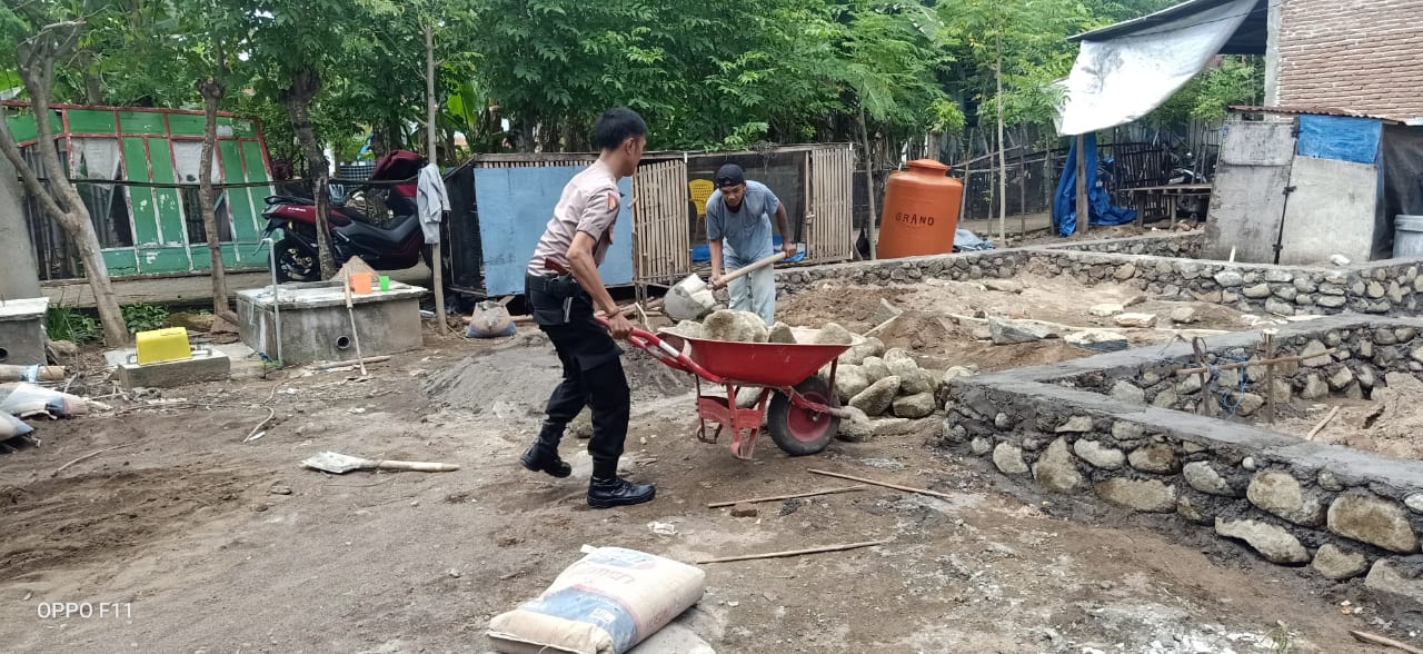 Melalui kesempatan tersebut, Bhabinkamtibmas desa Punaga Bripka Risno membantu masyarakat mendorong gerobak untuk proses pembuatan pondasi rumah milik warga, Sabtu/21/03/2020